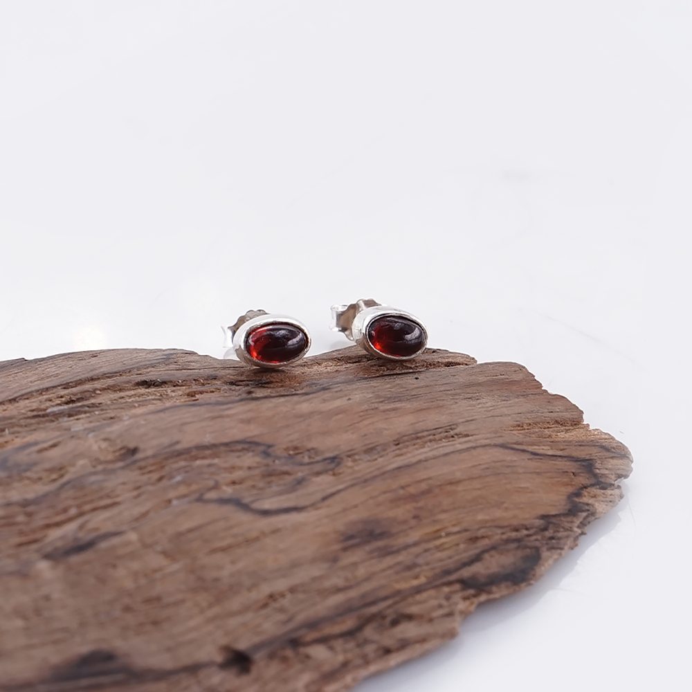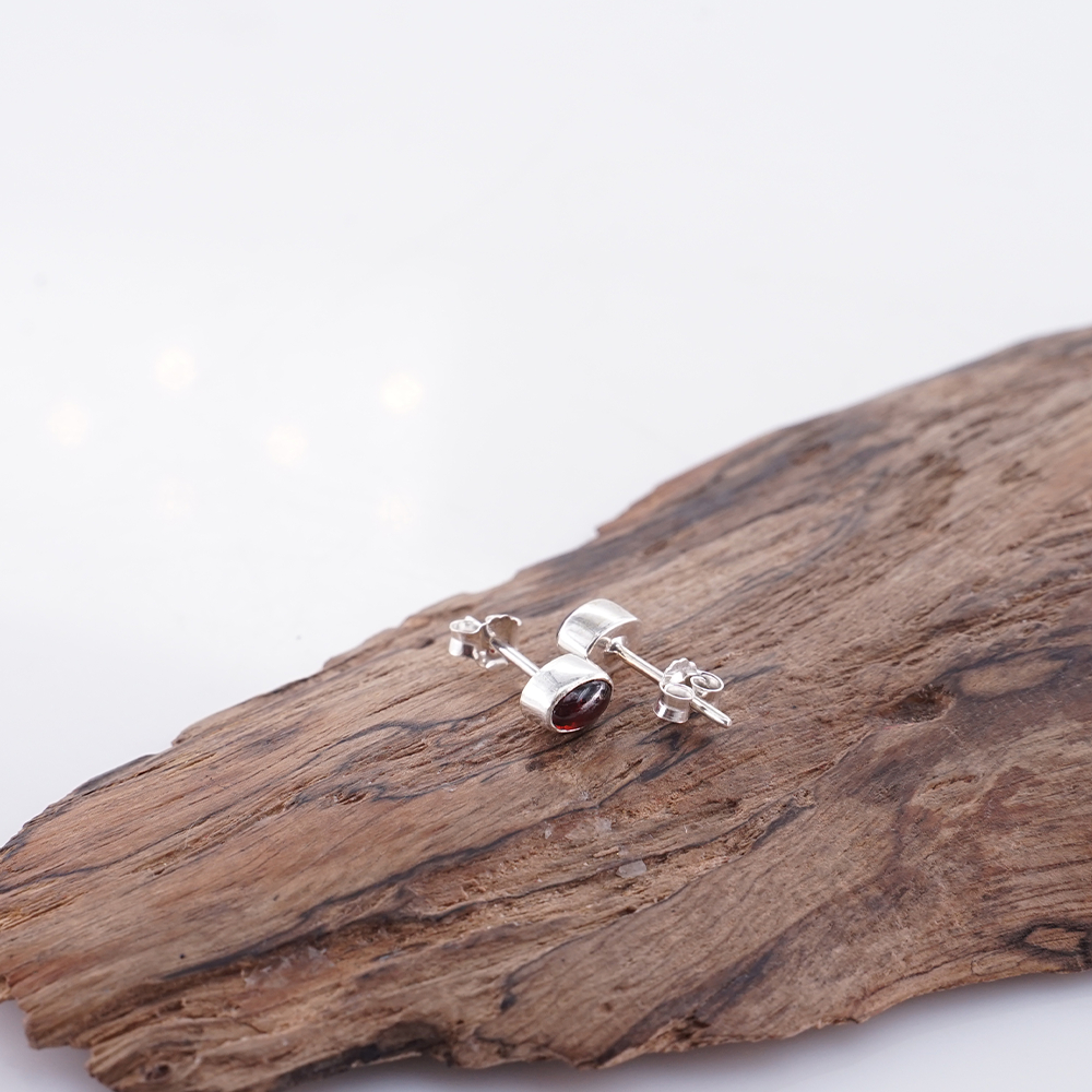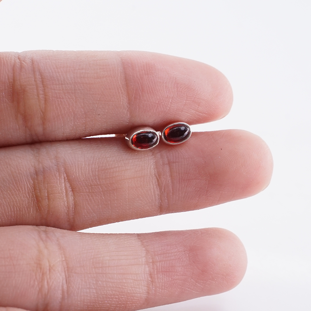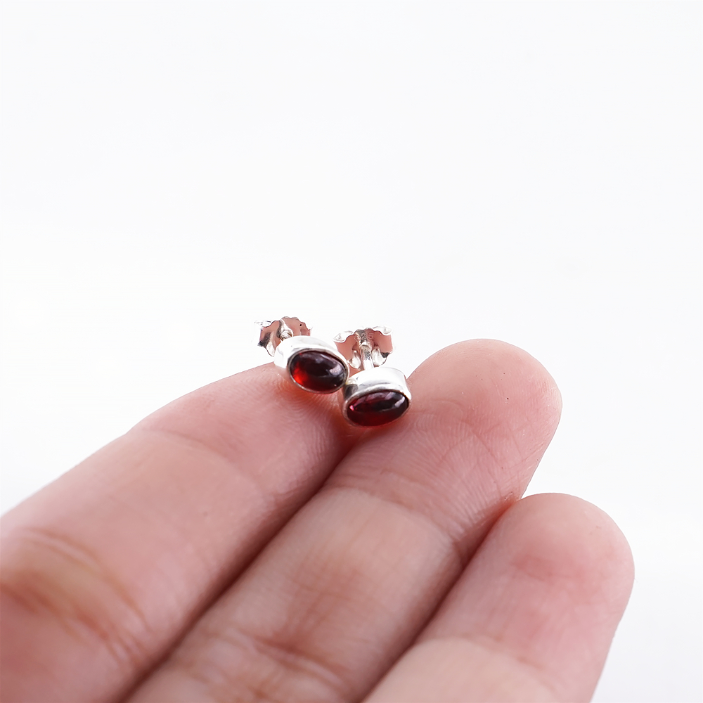 Anting Stud Wanita Perak Asli 925 Red Garnet Valinata