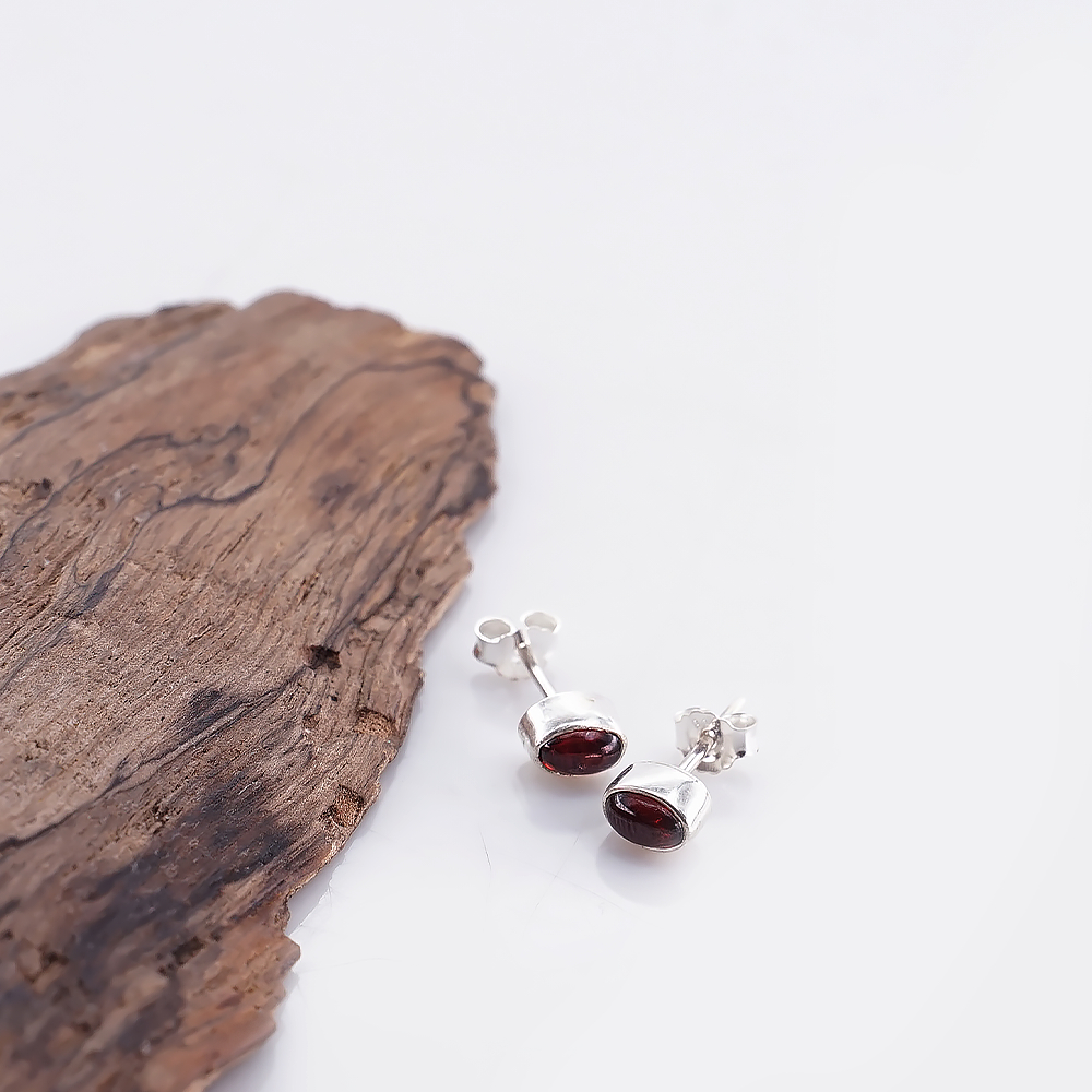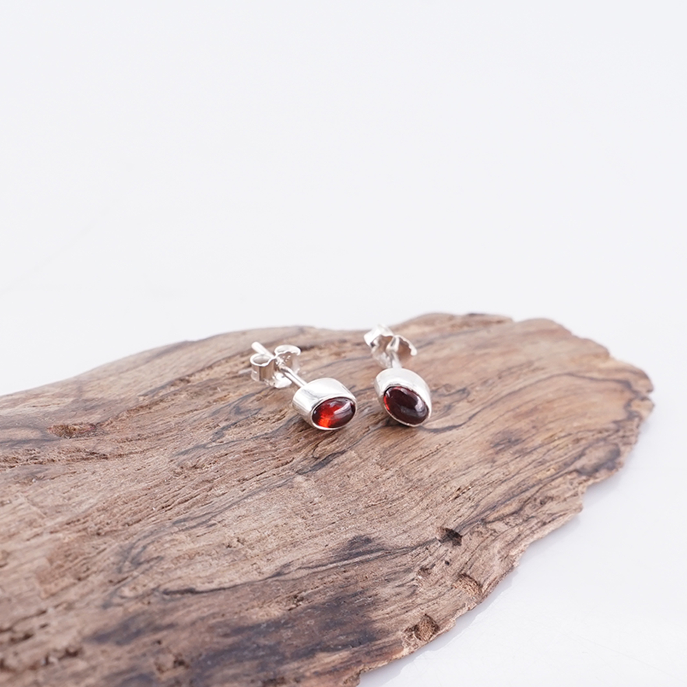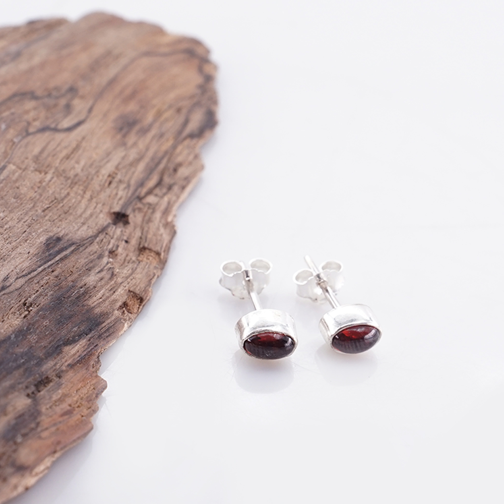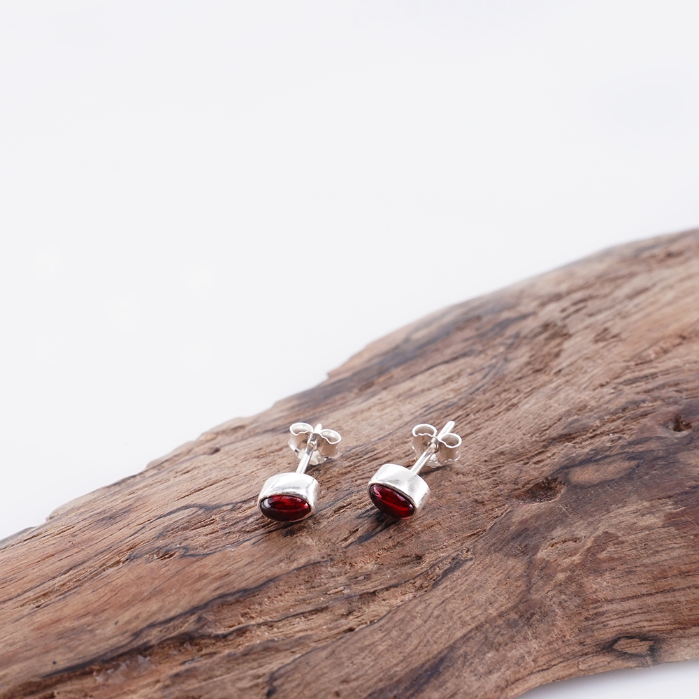 Anting Stud Wanita Perak Asli 925 Red Garnet Valinata