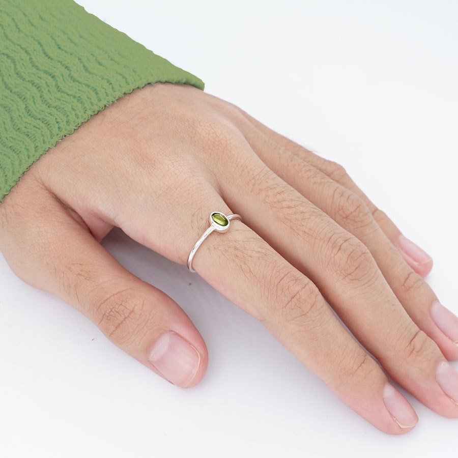 Cincin Imut Wanita Perak 925 Natural Green Oval Peridot Valimini