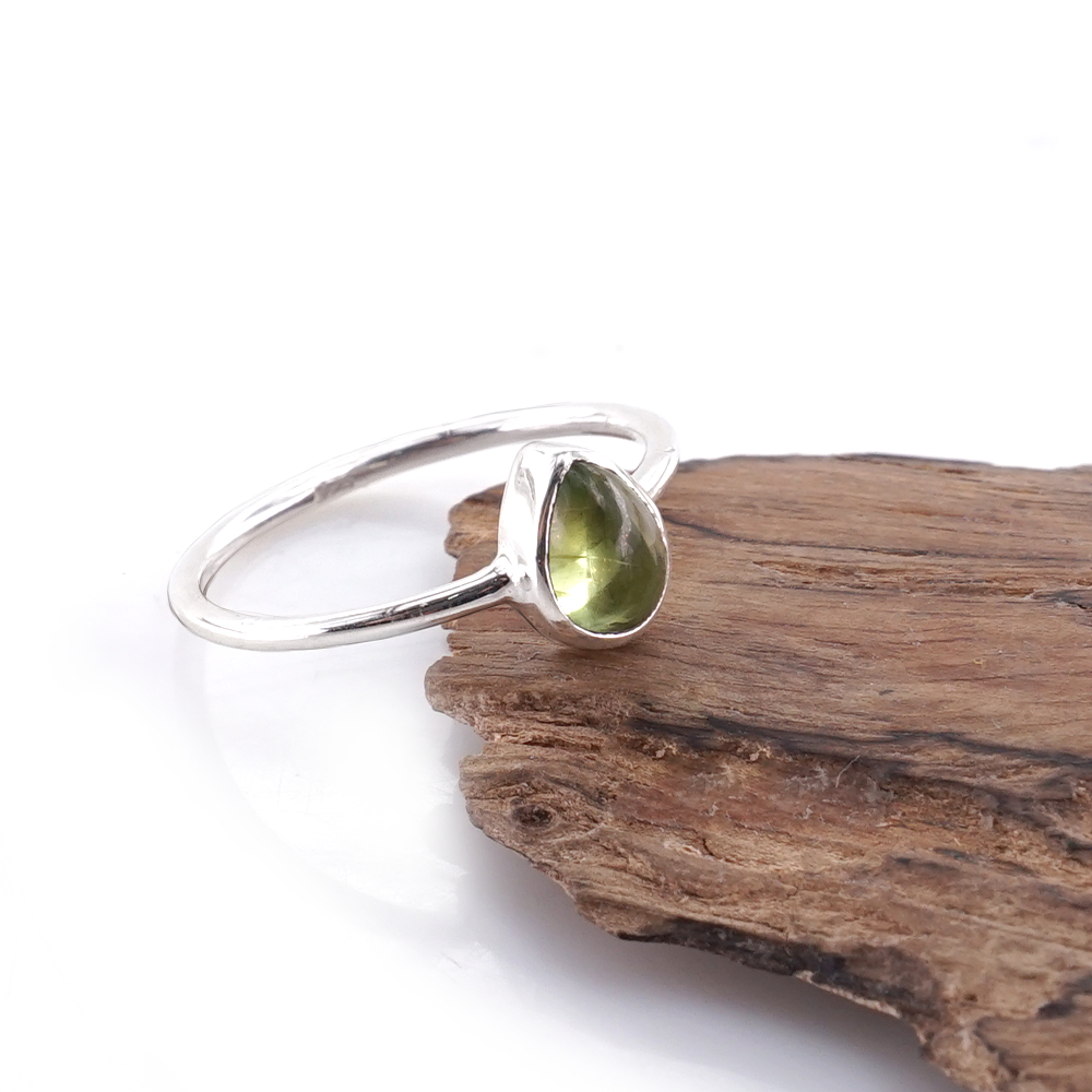 Cincin Imut Wanita Perak 925 Natural Green Peridot Ridatia menggabungkan keanggunan perak sterling 925 dengan keindahan alami batu Peridot berbentuk tetes
