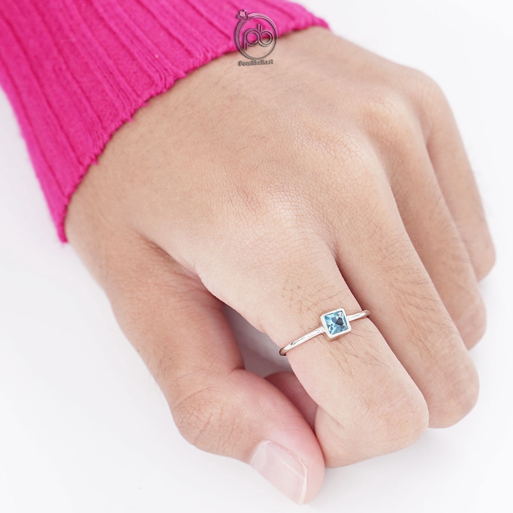 Cincin Imut Wanita Perak Sterling 925 Swiss Topaz Paziana