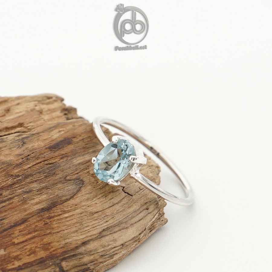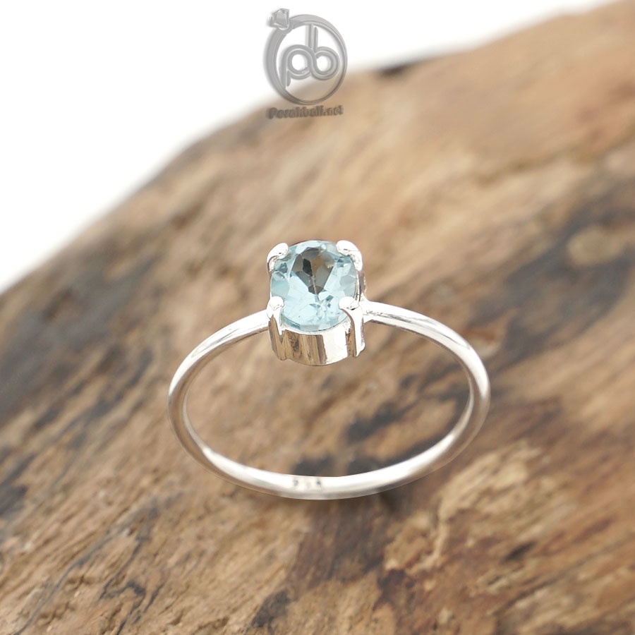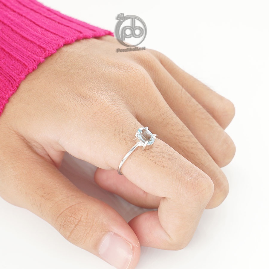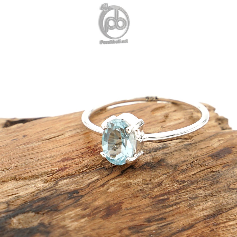 Aksesories Cincin Sterling Silver 925 dengan Batu Permata Natural Sky Topaz