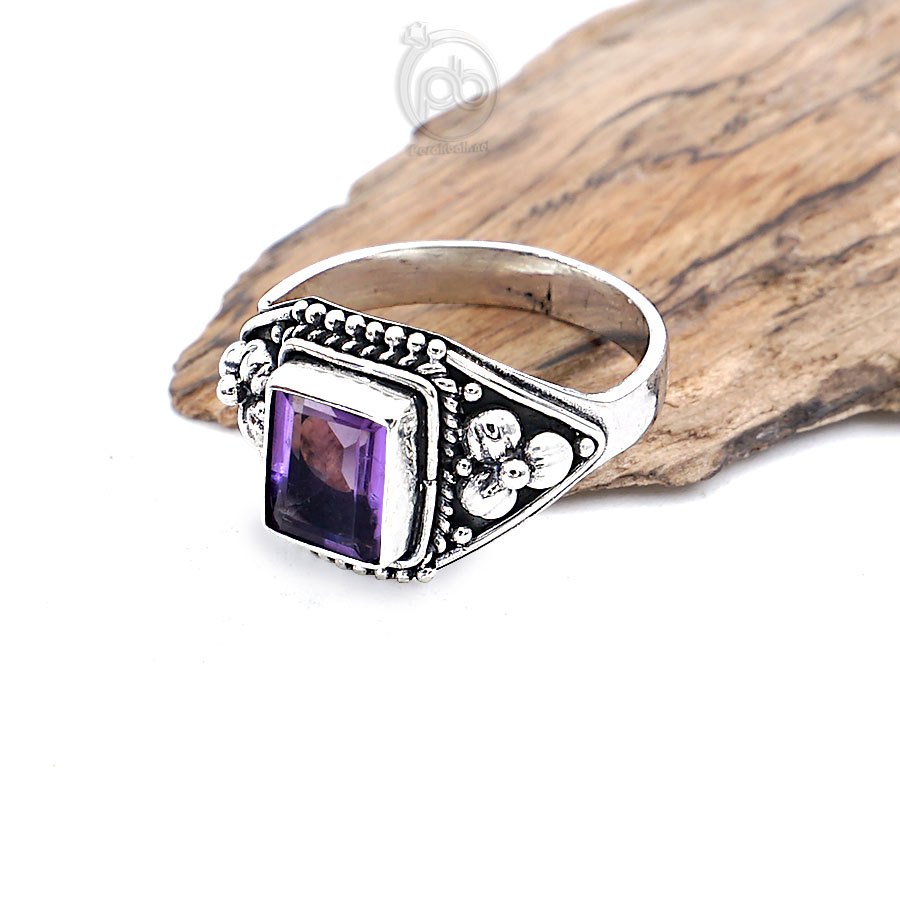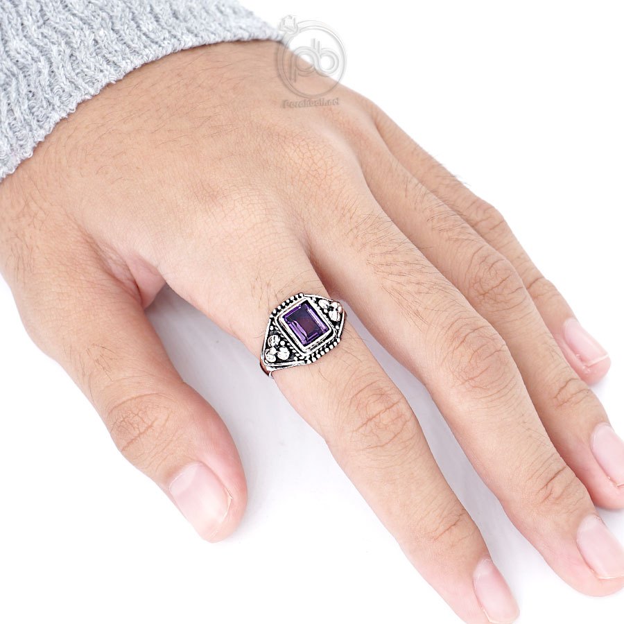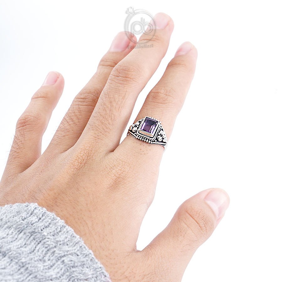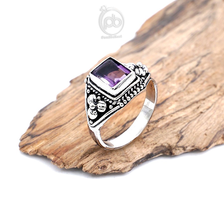 Cincin Kecubung Amethyst Natural Wanita Perak Asli Silver 925 Quarina
