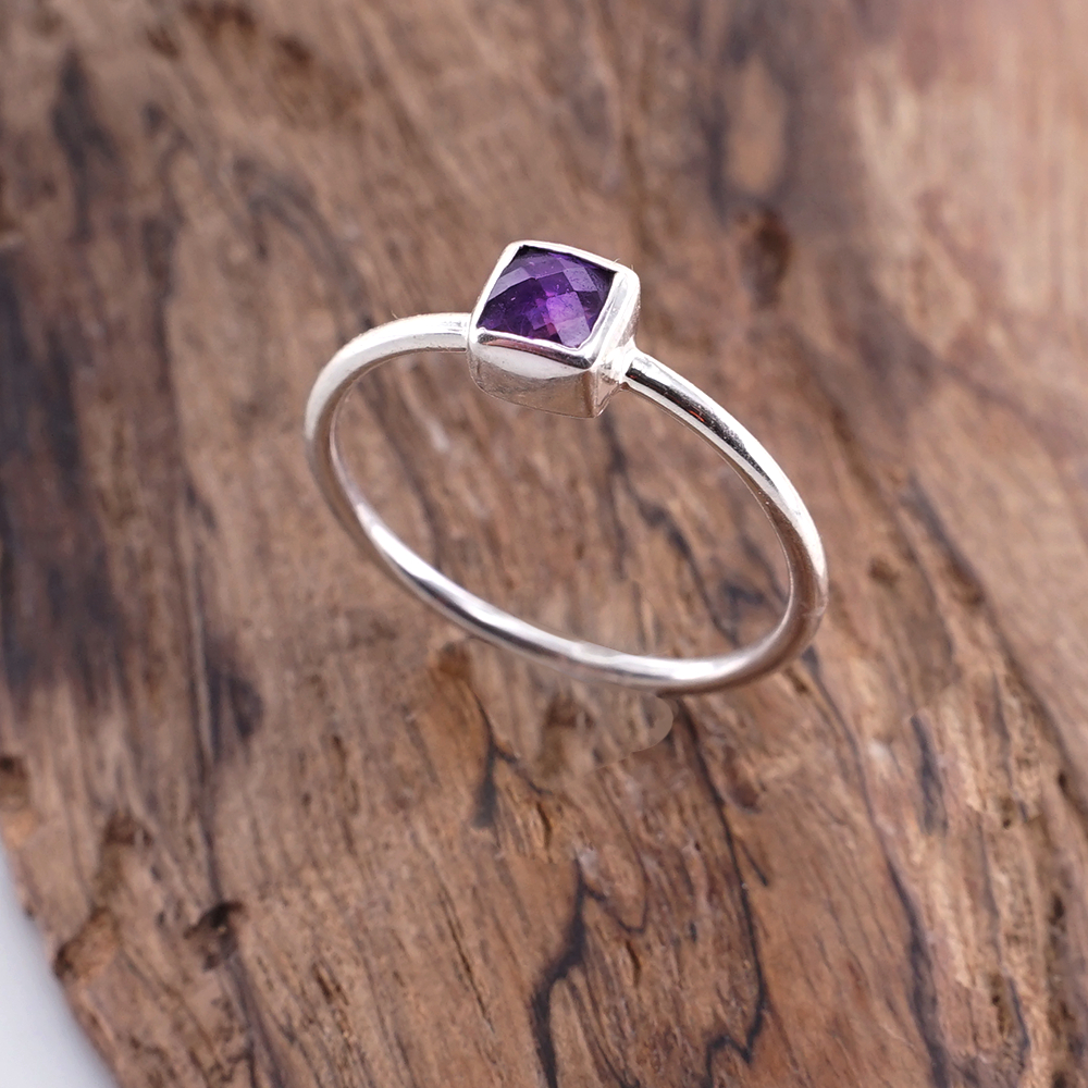 Cincin Kecubung Wanita Perak 925 Natural Amethyst Kotameta