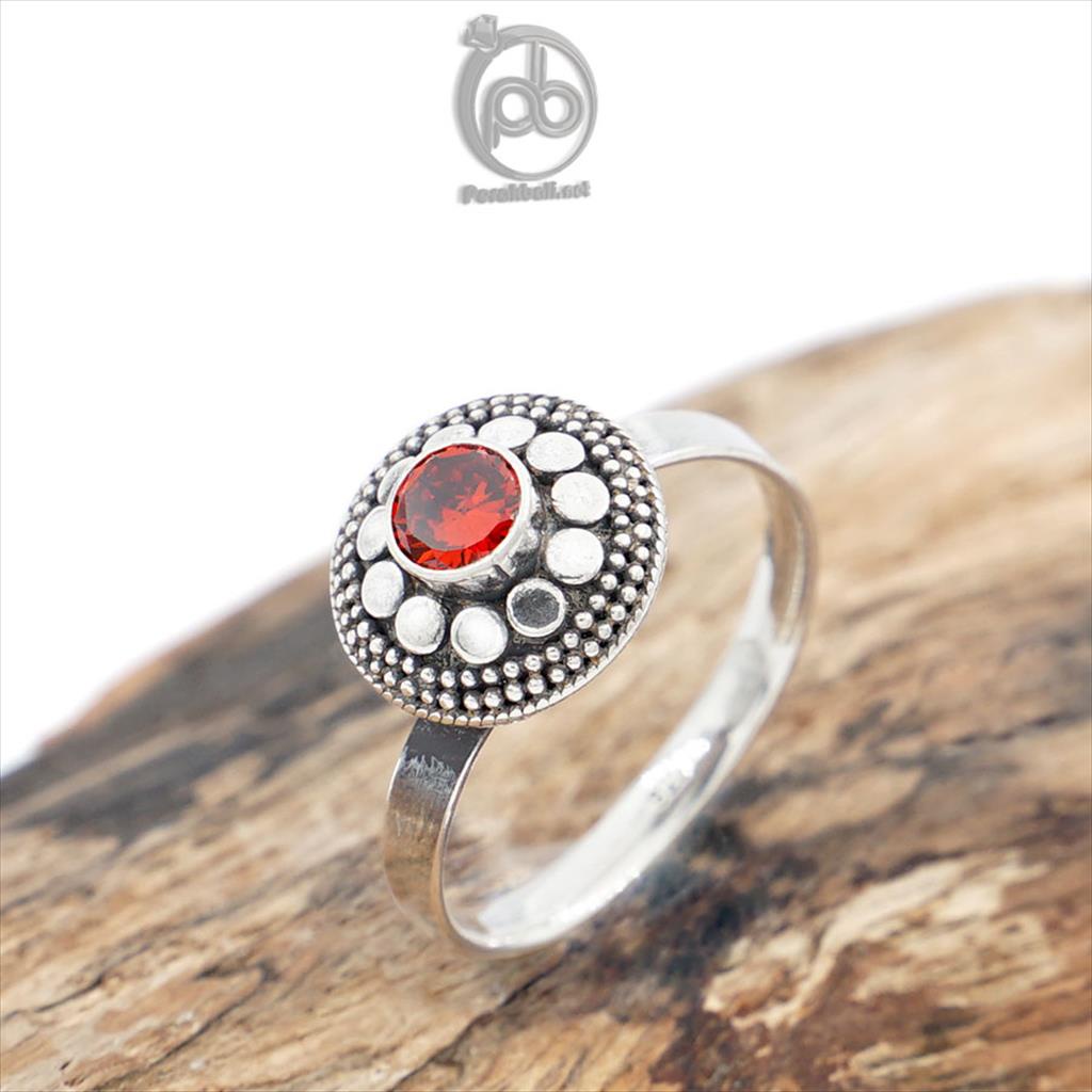 Cincin Perak Asli 925 dengan Batu Permata Zircon Merah Motif Tameng Jawan Almaira