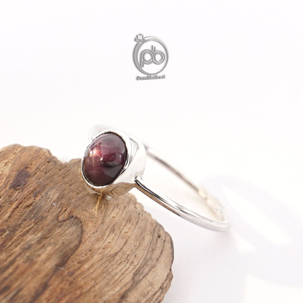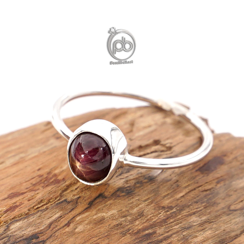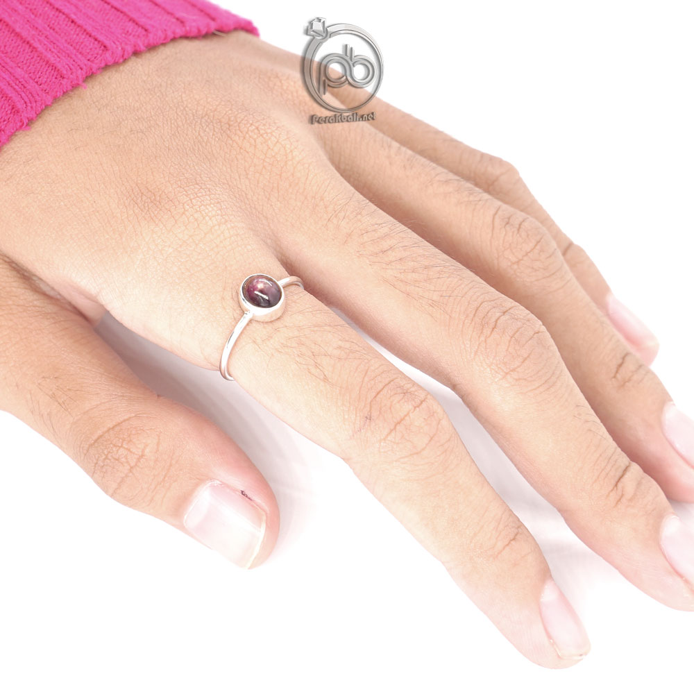 Cincin Perak Asli Wanita Sterling 925 Ruby Madagaskar, Aksesories cincin Wanita Sterling Silver 925 dengan Batu Natural Star Ruby Madagaskar