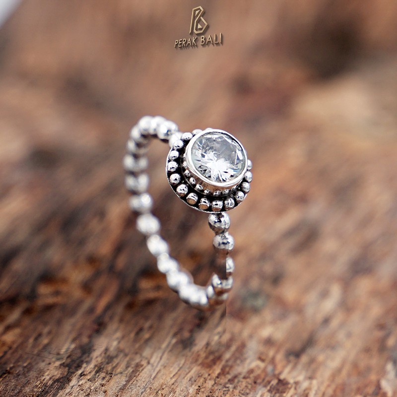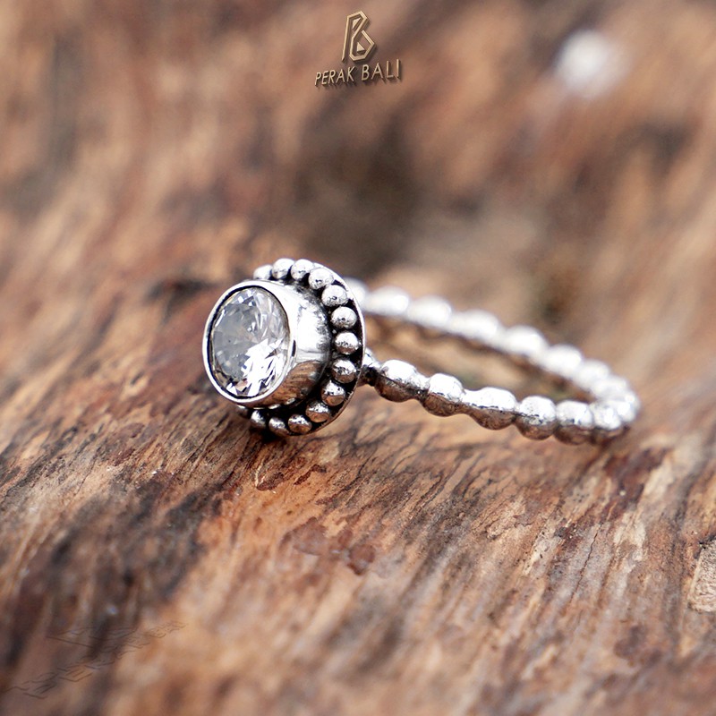Cincin Perak Bali Silver Ring 925 Pandora kembang Jawan Mata Bening