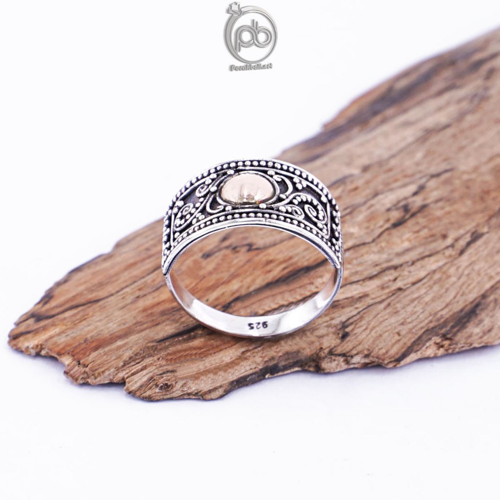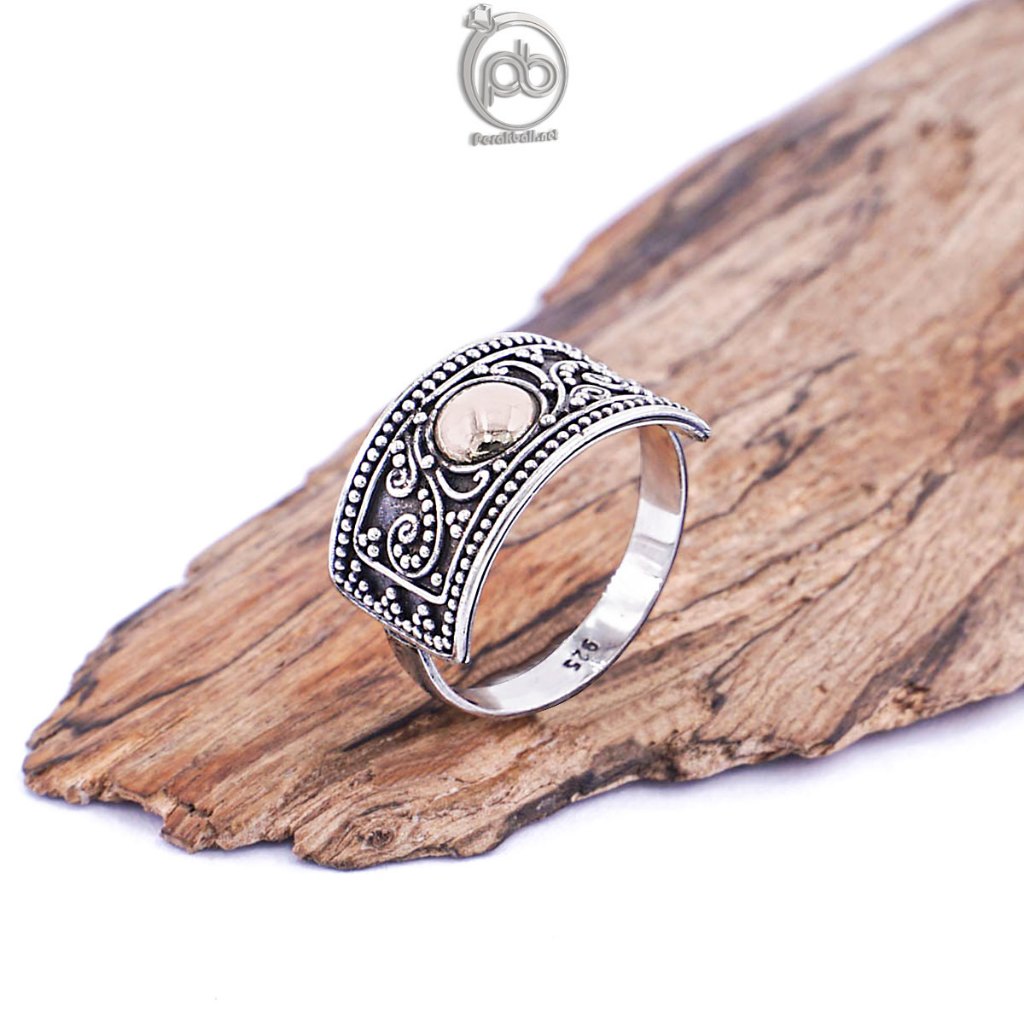 Cincin Perak Bali Wanita Vintage Silver 925 Mata Emas Gong Patralia