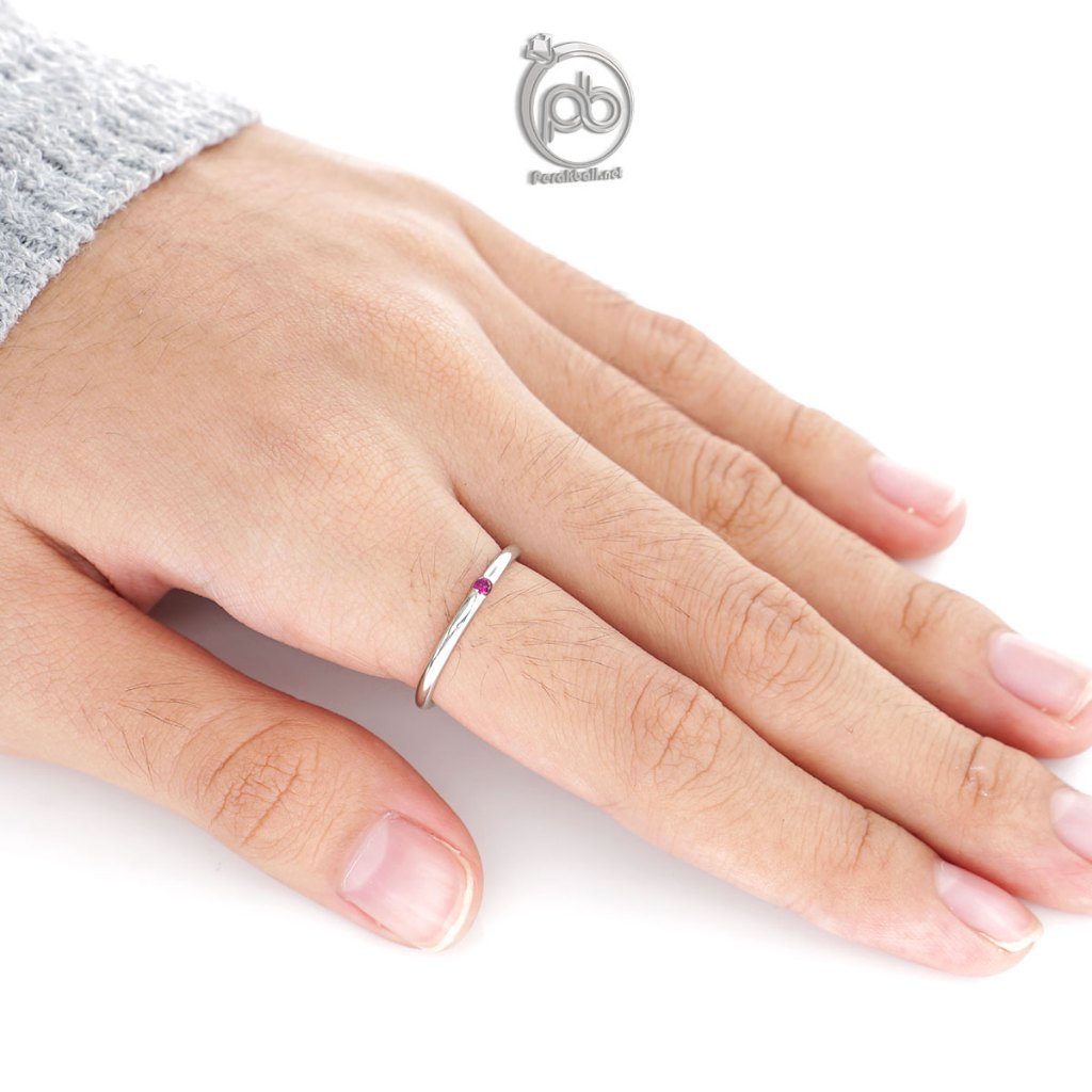 Cincin Simple elegant Wanita Pria Mini Red Zircon Perak 925 Elegina