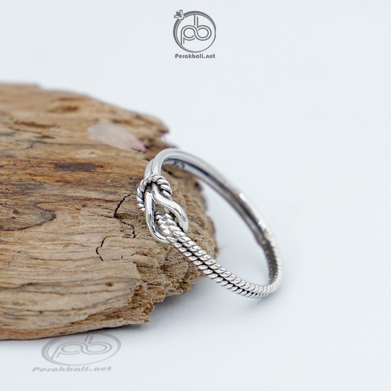 Cincin simple wanita perak asli 925 desain polos dengan kombinasi kawat plintir simpul. Elegan untuk gaya minimalis