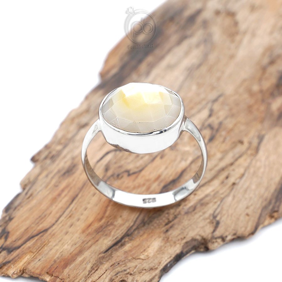 Cincin Wanita Kerang Putih Faceted Perak 925 Asli Faselina