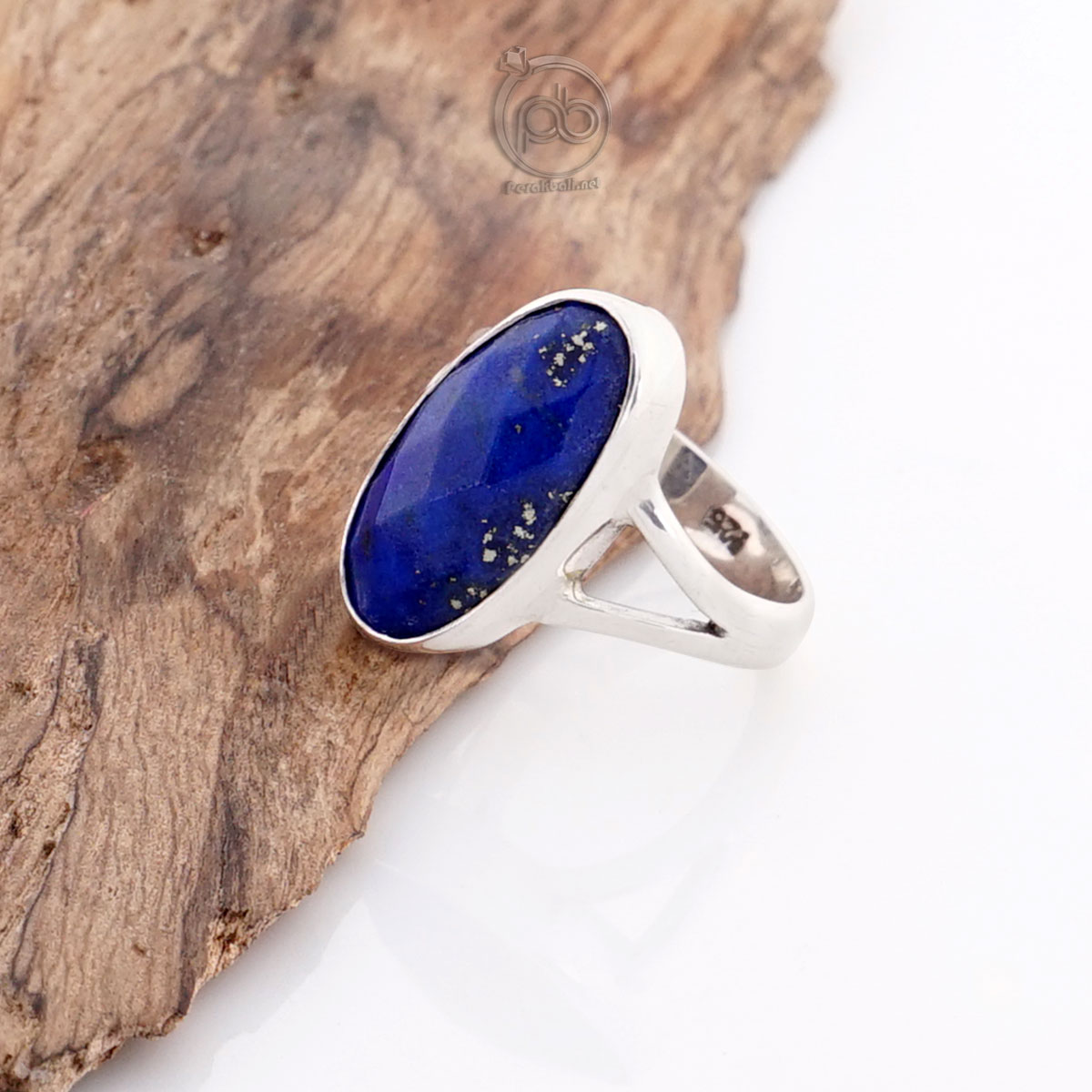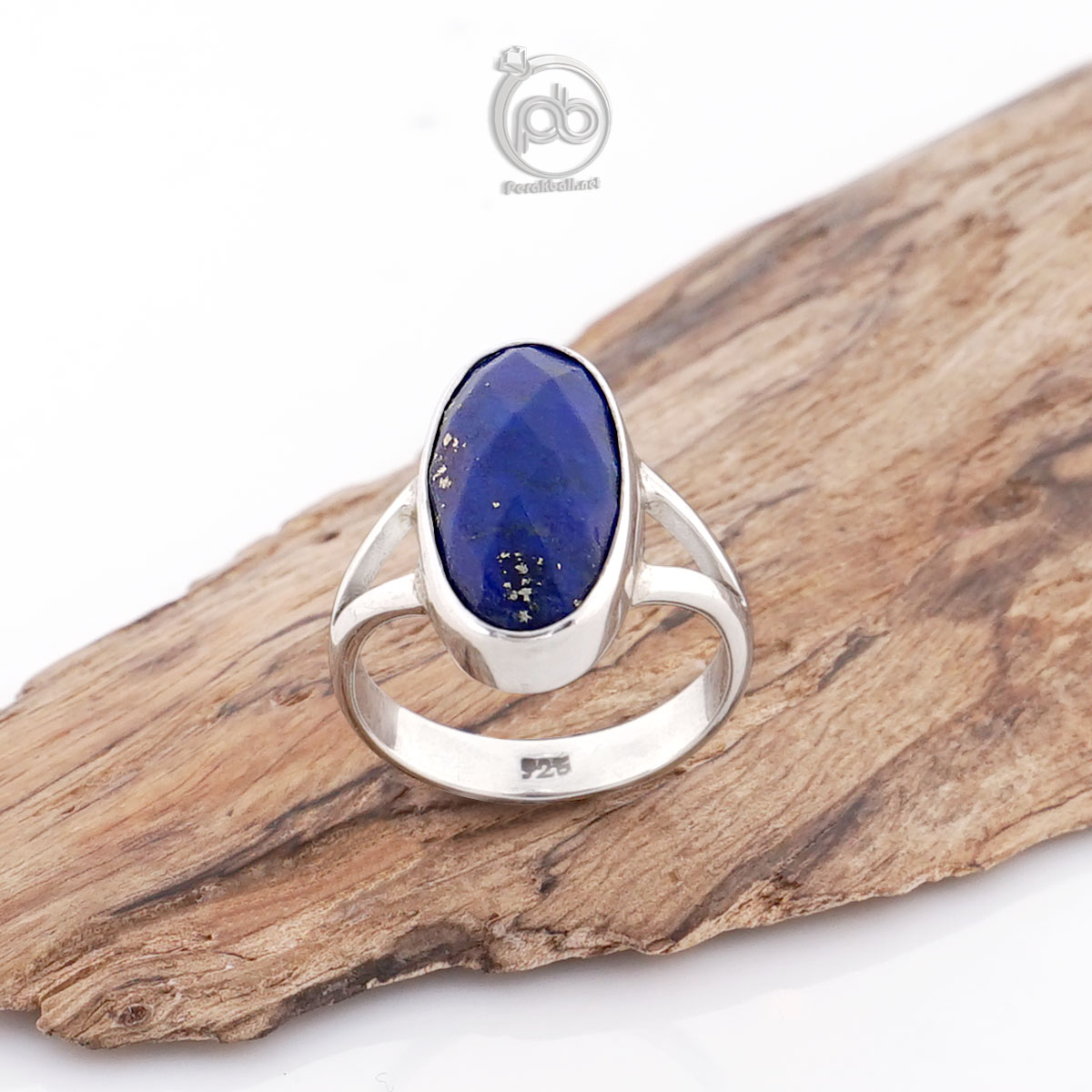 Cincin Wanita Lapis Lazuli Oval Cutting Natural Perak Asli 925 Luziola