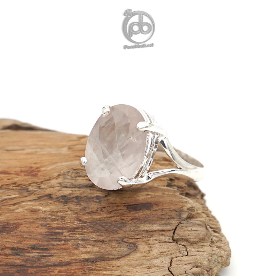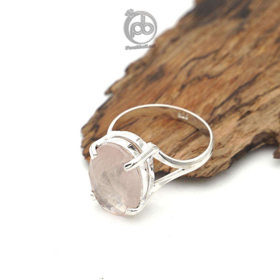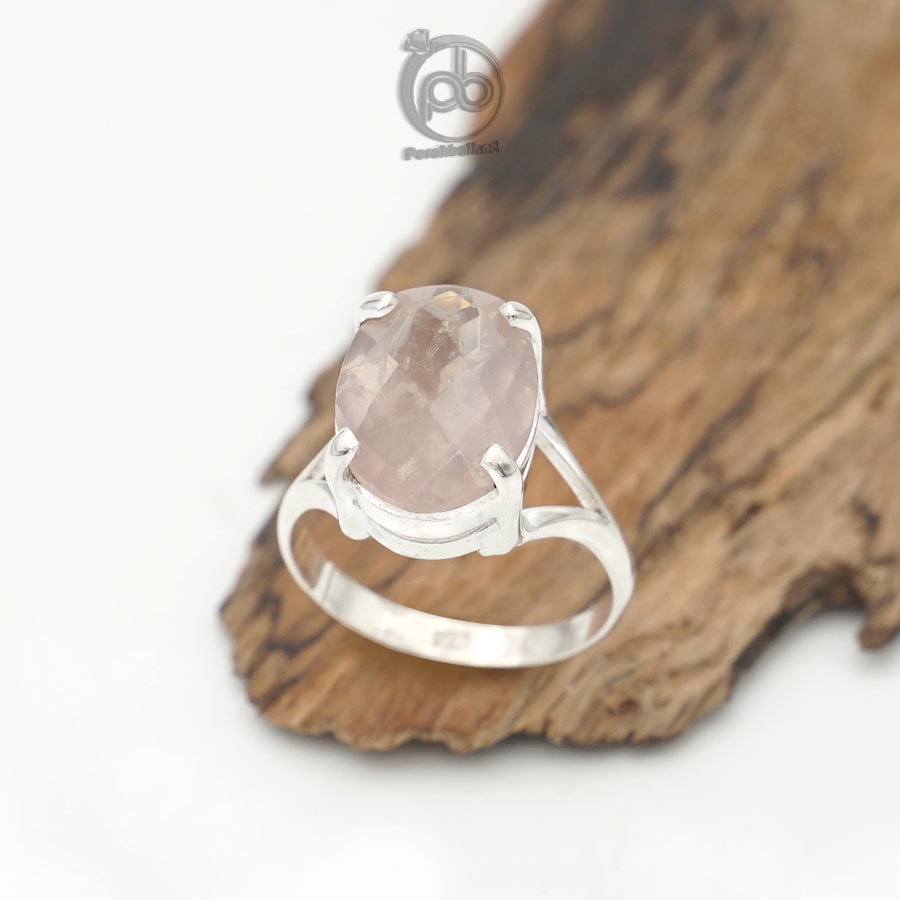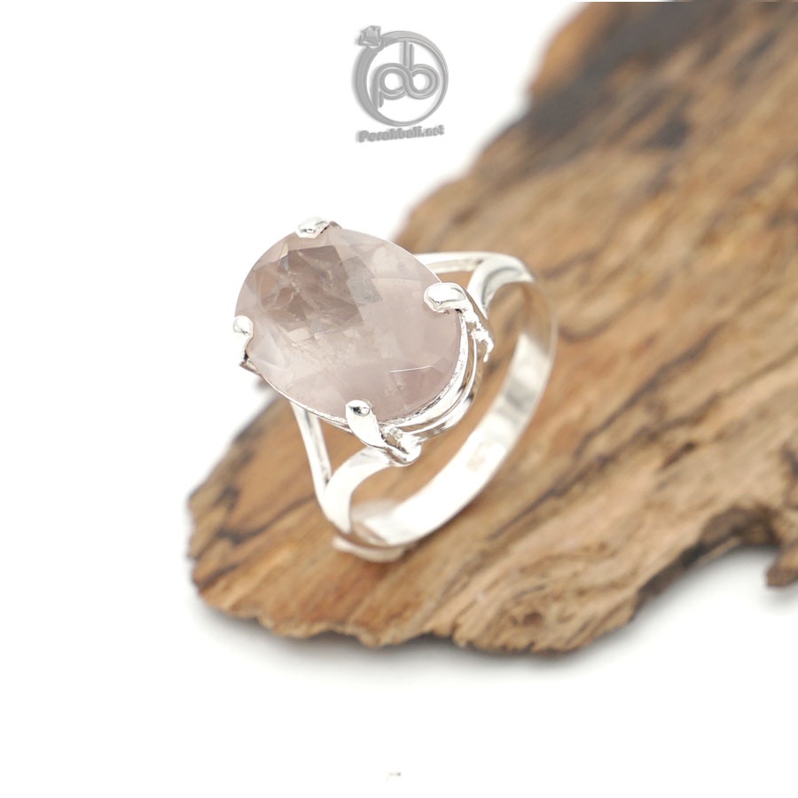 Cincin wanita perak 925 asli ini memiliki desain yang cantik dan elegan, dengan natural Rose Quartz sebagai hiasan utama.