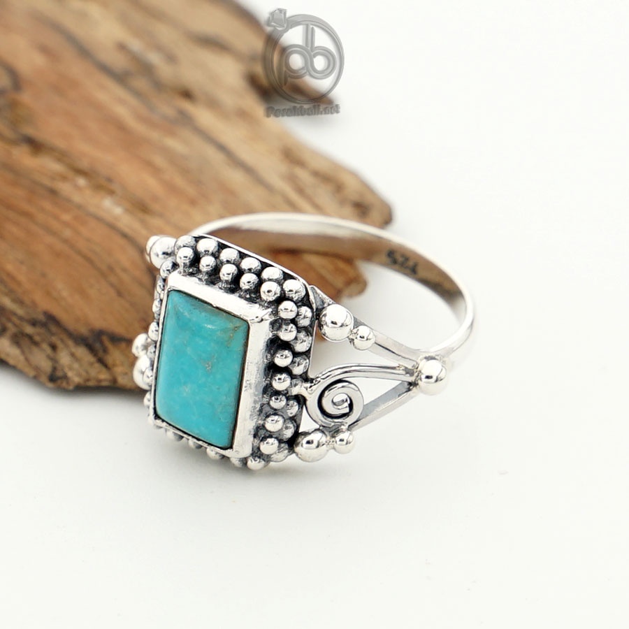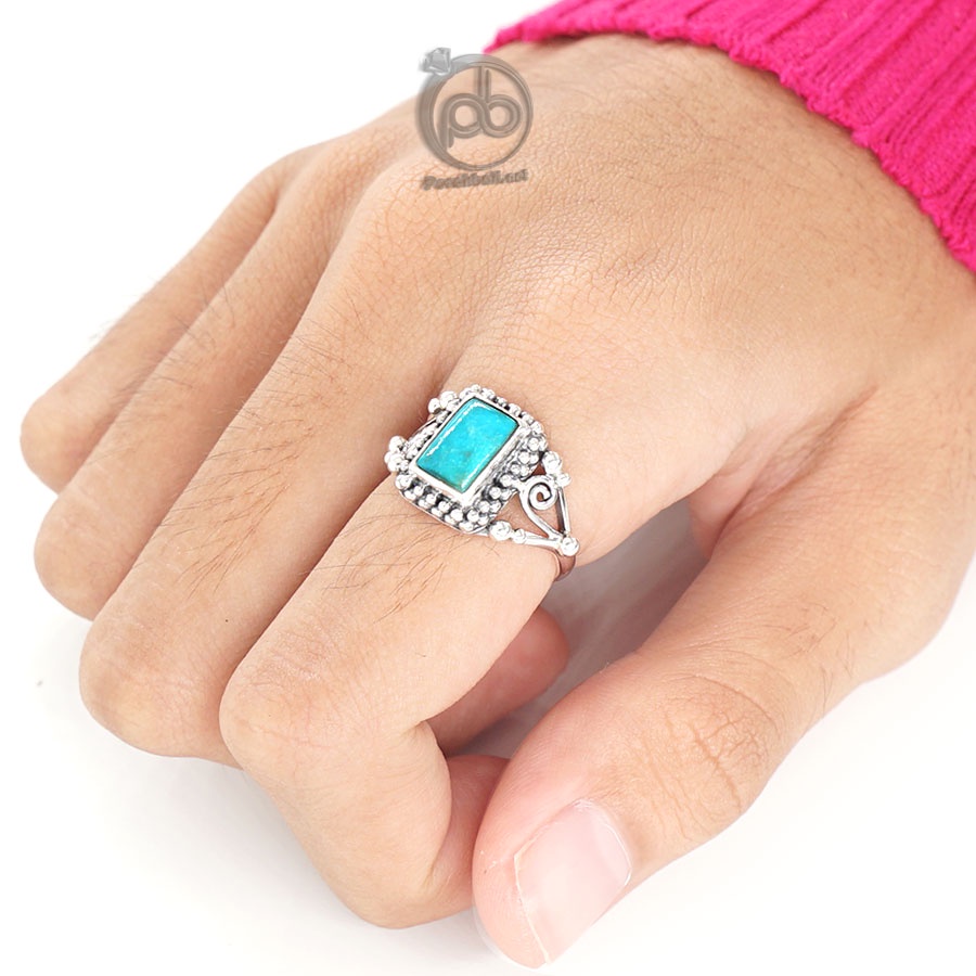 Aksesories Cincin Sterling Silver 925 dengan Batu Turquoise Bagueeta
