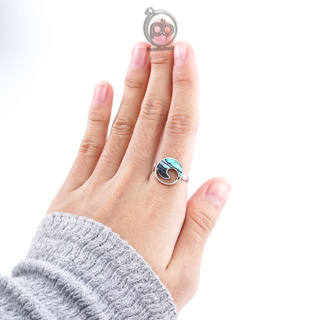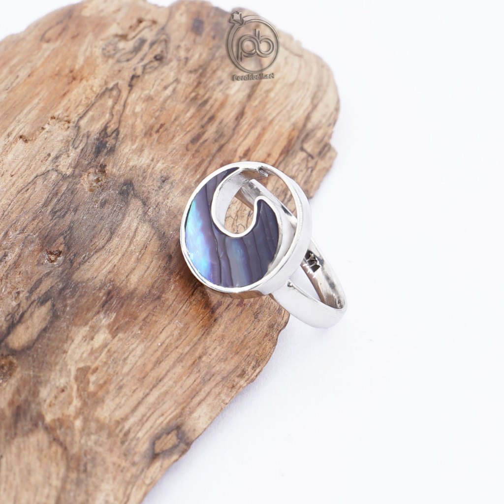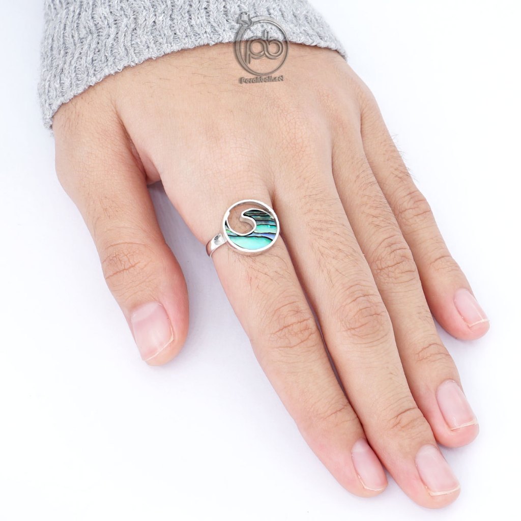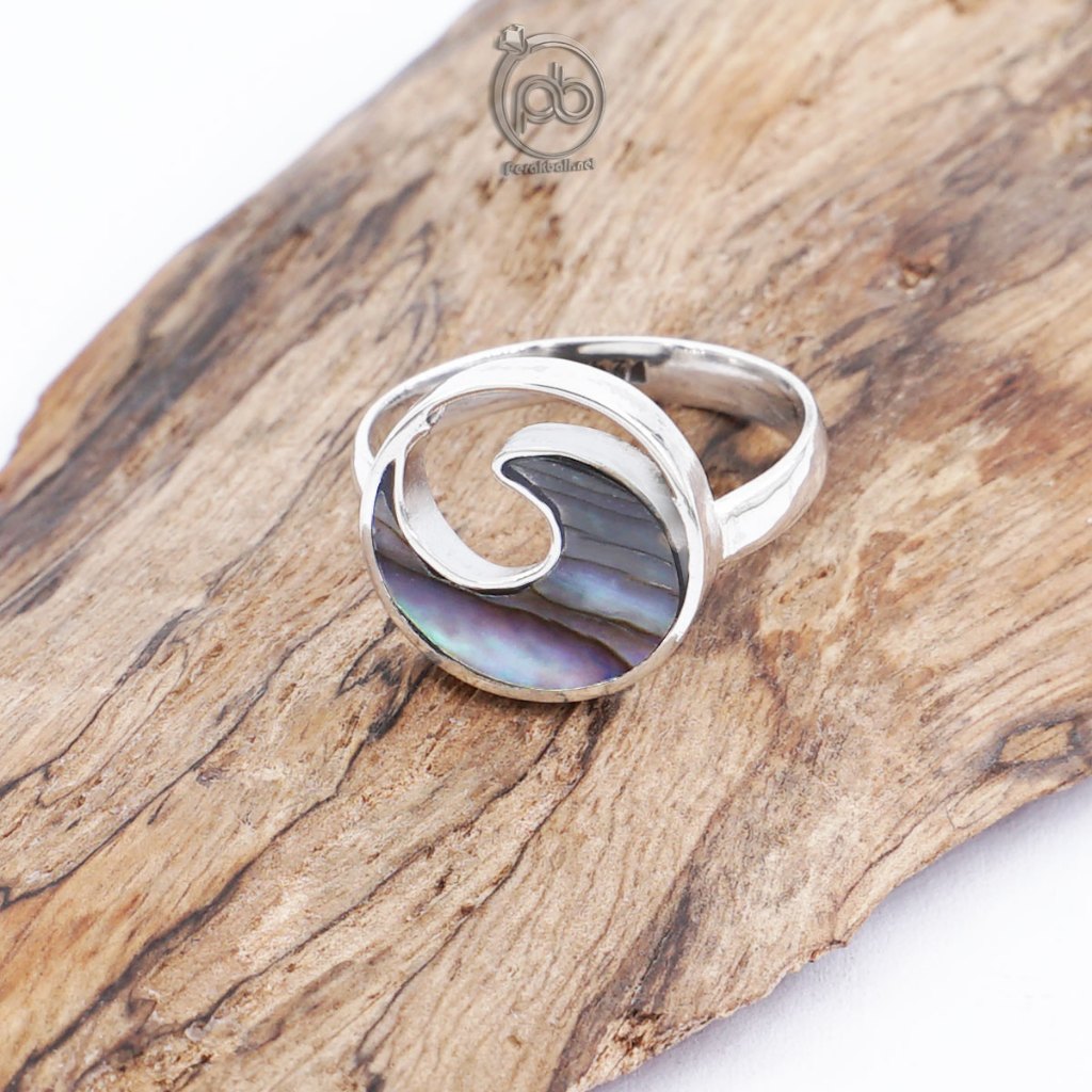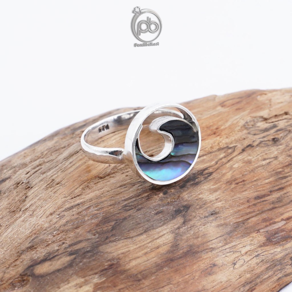 Cincin Wanita Perak 925 Kerang Batik Paua Abalone Bulat Waveo