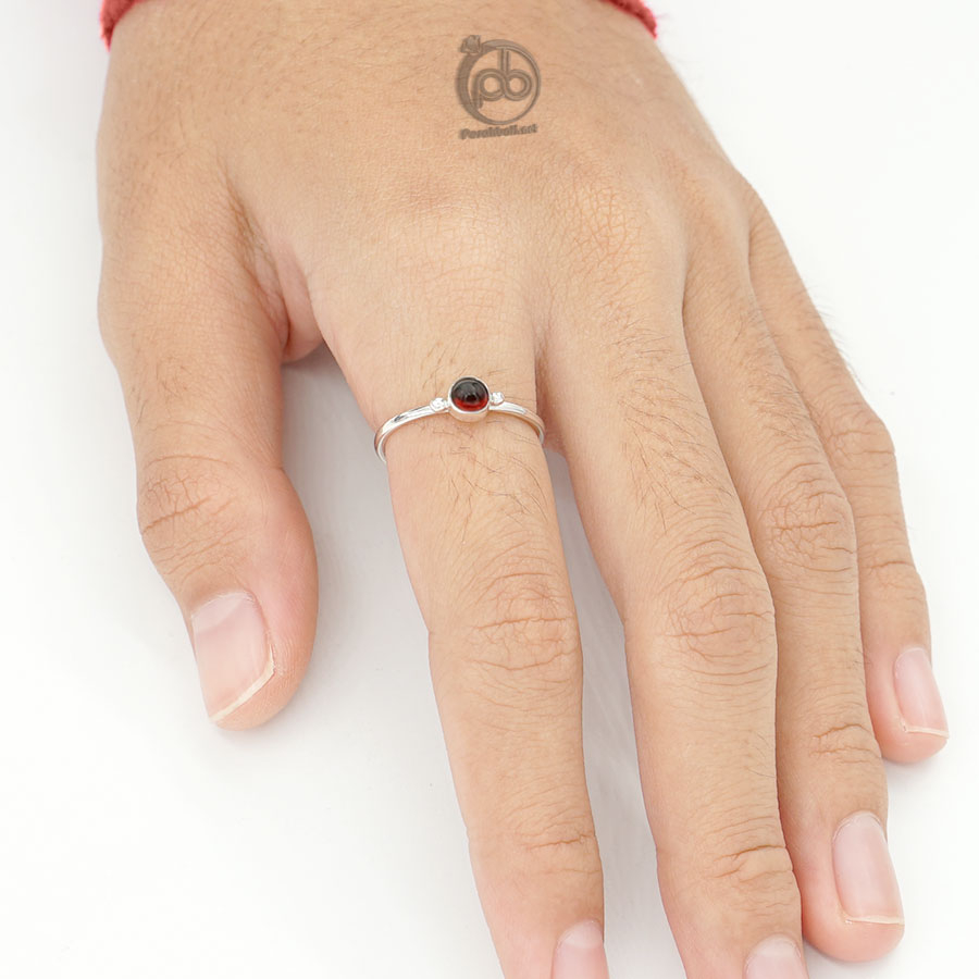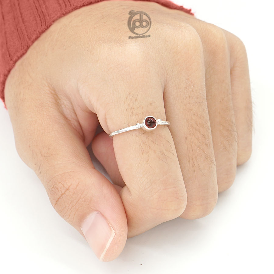 Cincin Wanita Perak 925 Natural Red Garnet Mini Jawan