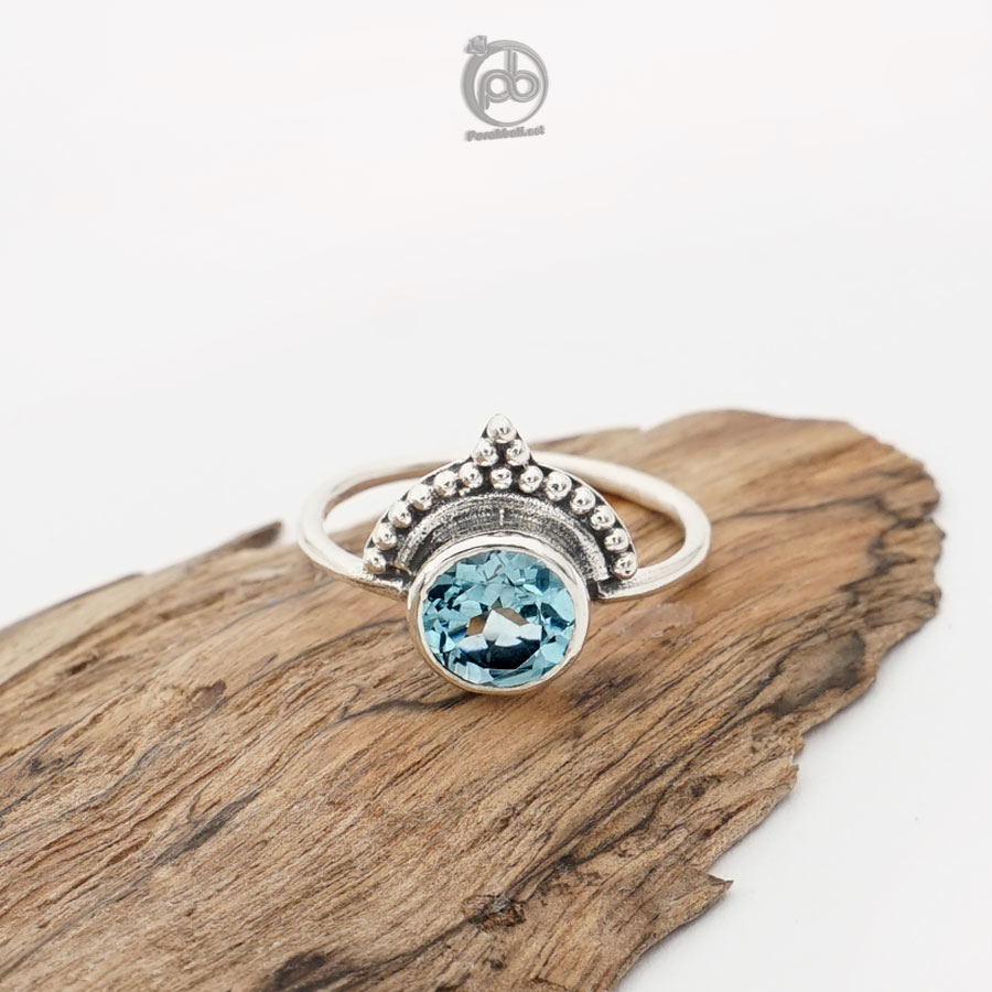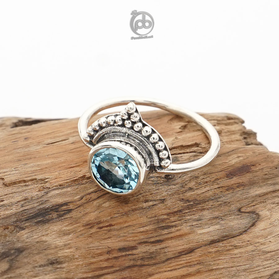Cincin Wanita Perak 925 Natural Sky Topaz Janger Bali