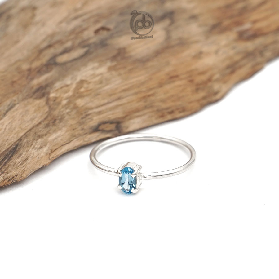 Cincin yang elegan untuk wanita Terbuat dari bahan perak 925 dengan batu permata topaz Swiss mini oval yang cantik.