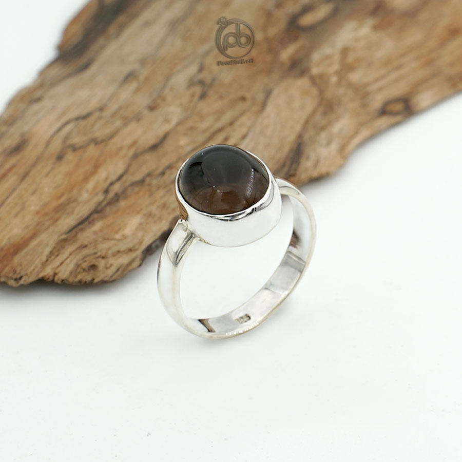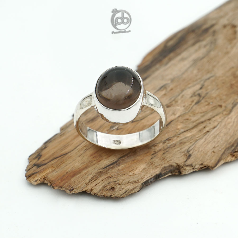 Cincin Wanita Smoky Quartz Natural Perak Asli 925 Chubiola