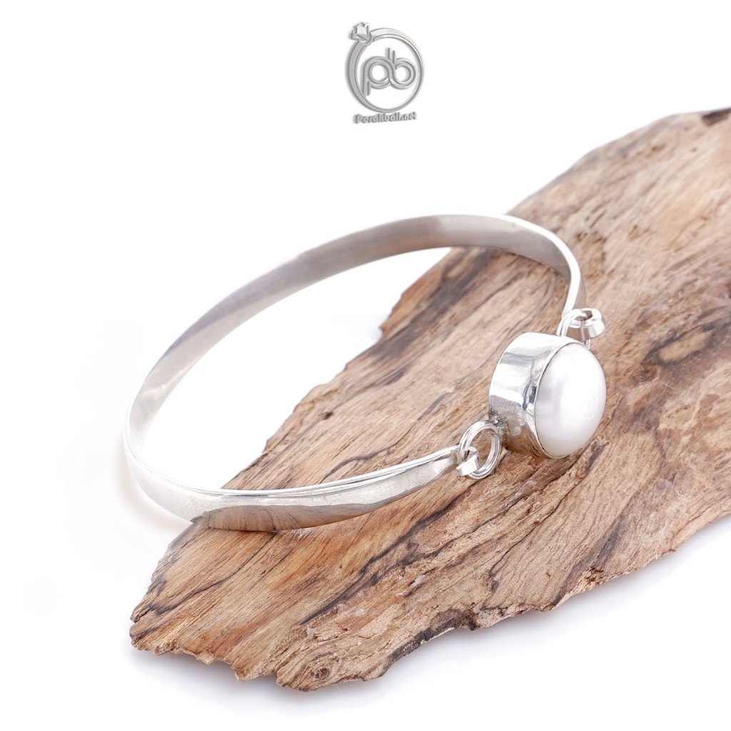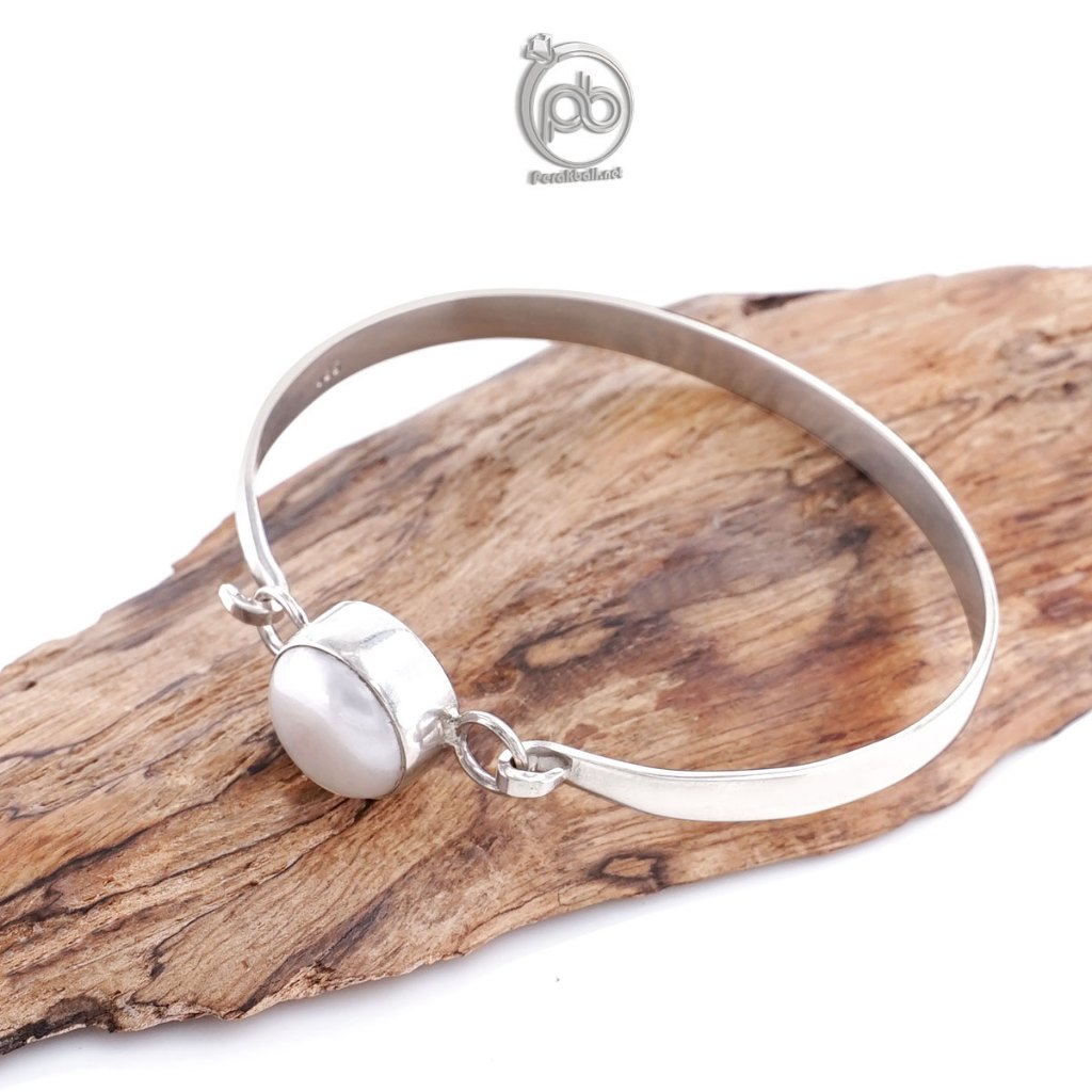 Hadiahkan diri Anda atau orang tercinta dengan pesona alami yang elegan dari Gelang Bangle Mutiara Putih Air Tawar Wanita Perak 925 Natural Permalini.