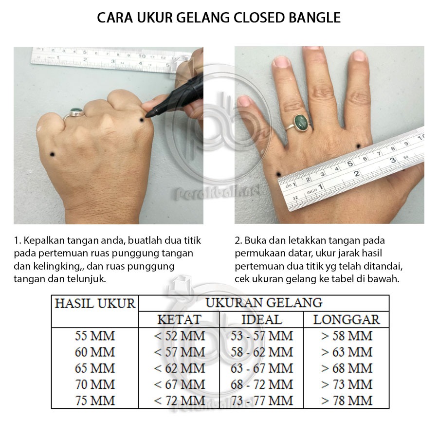 bangle ini tersedia dalam tiga pilihan diameter (55mm, 60mm, dan 65mm), sehingga dapat disesuaikan dengan ukuran pergelangan Anda.