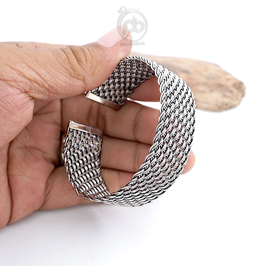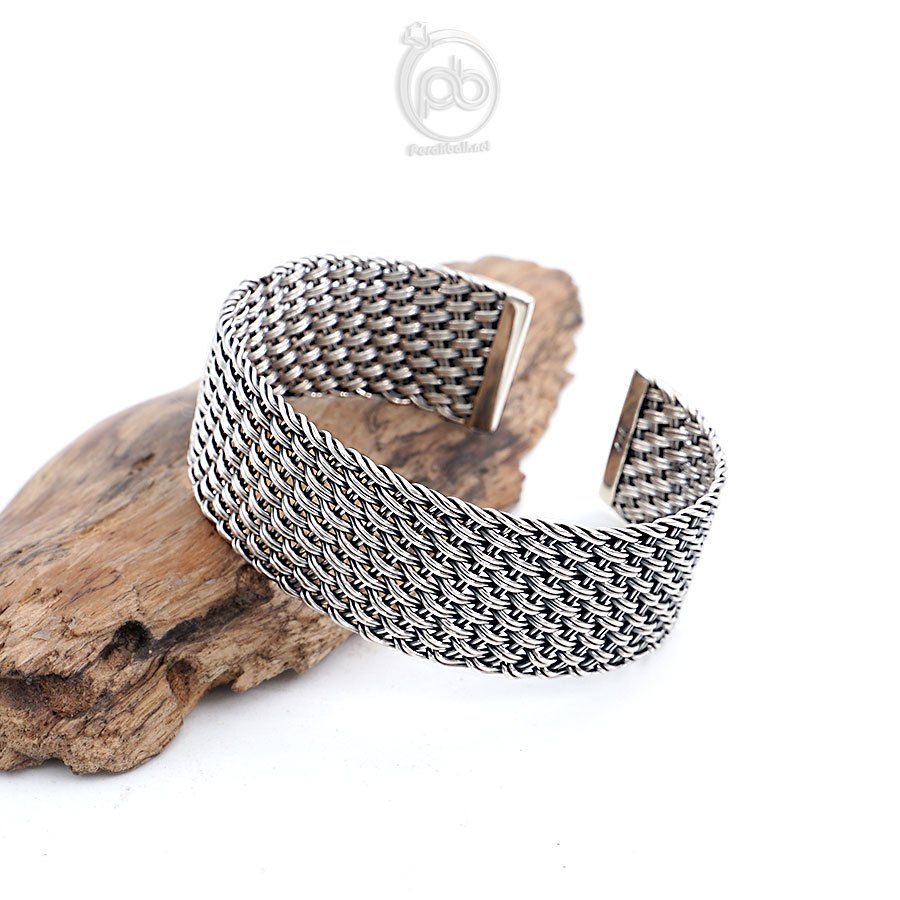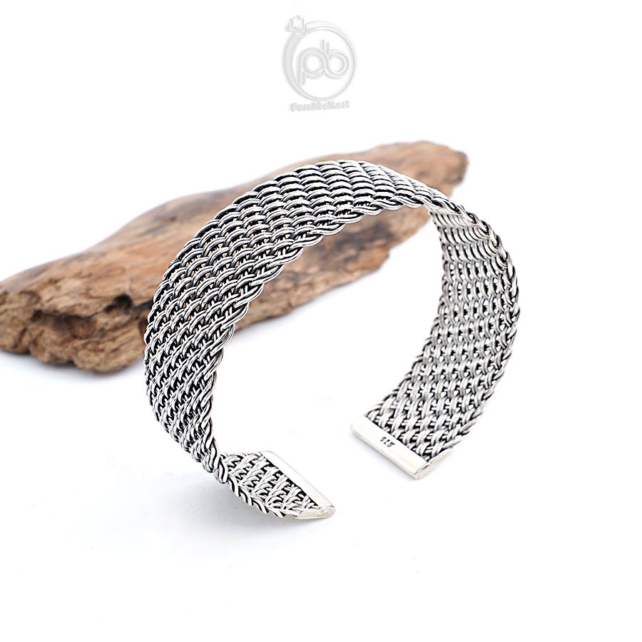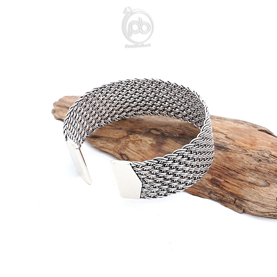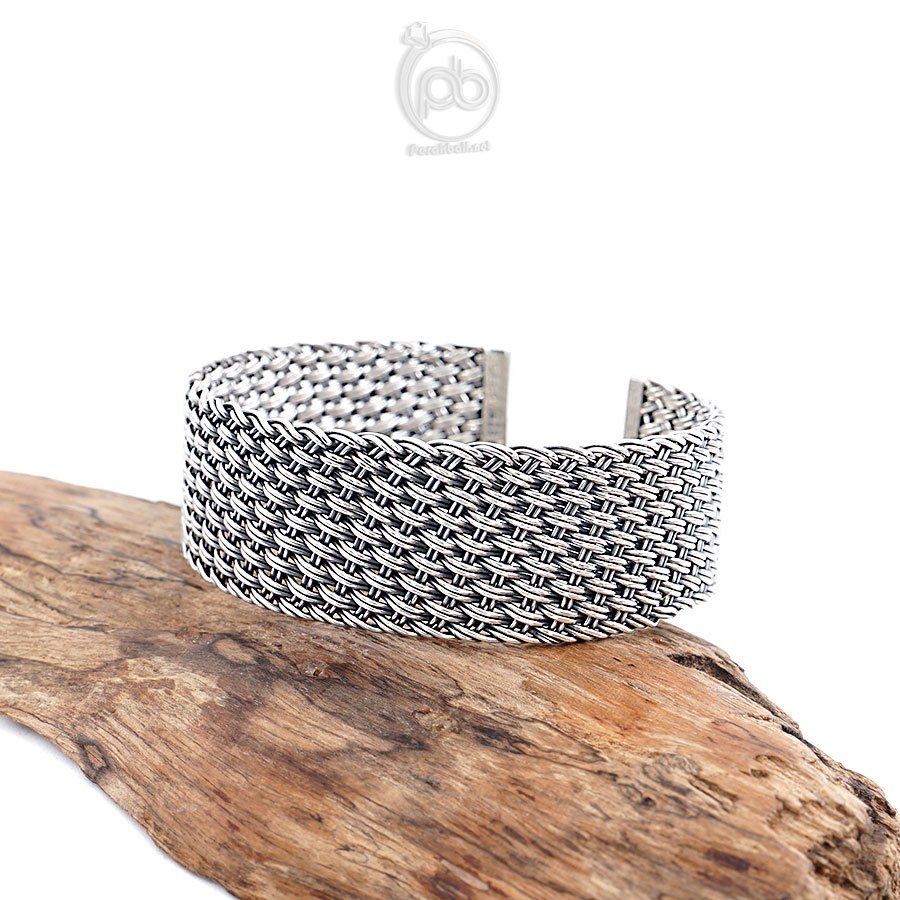 Gelang Wanita Lebar Perak 925 Open Bangle Flexi Anyam Veruto
