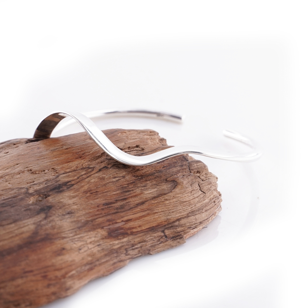Gelang Wanita Open Bangle Perak 925 Simple Wavelyn