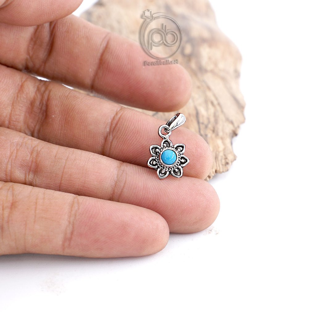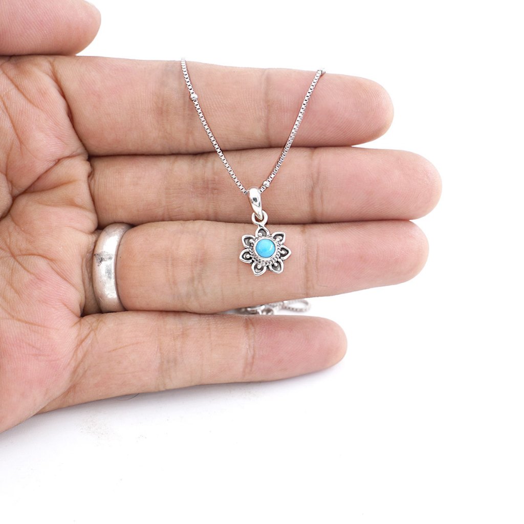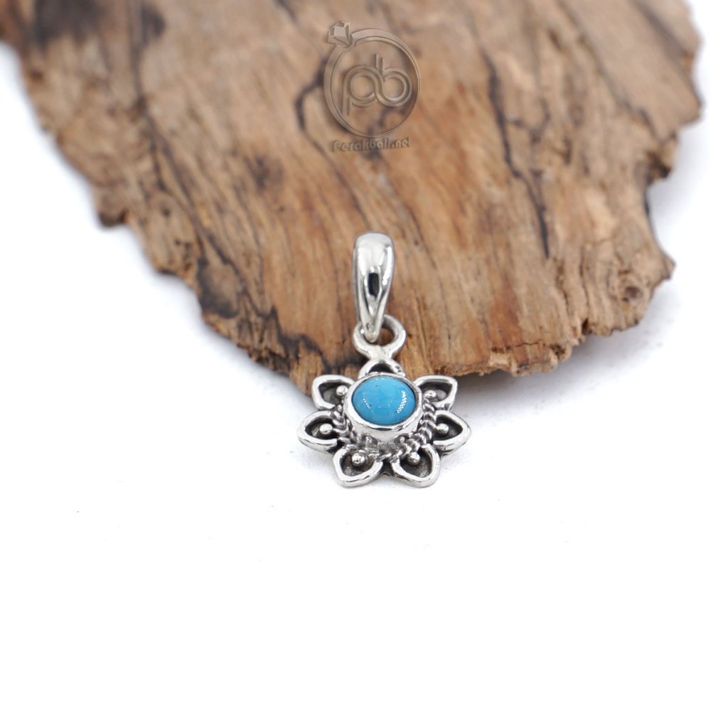 Liontin Mini Turquoise Perak 925 Kembang Jawan Lilyqueen| Tanpa Kalung