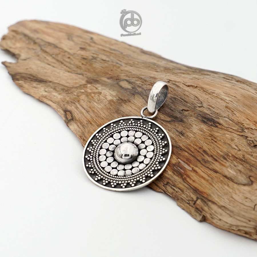 Perhiasan Liontin yang terbuat dari perak 925, yang didesain dengan motif gong Bali yang unik.