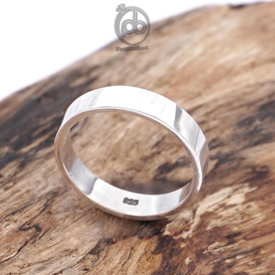 Cincin Pria-Wanita Perak Asli 925 Simple Plain Lingkar Polos