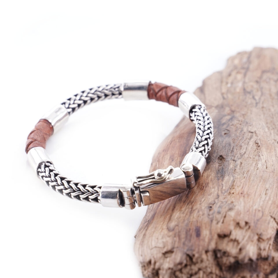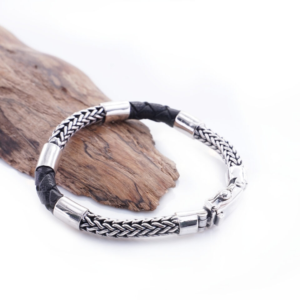 Gelang Pria Wanita Perak Asli 925 Silver Leather Jalin Jimbaro