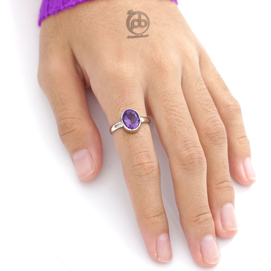 Cincin Wanita Perak 925 Natural Kecubung Amethyst Valomita
