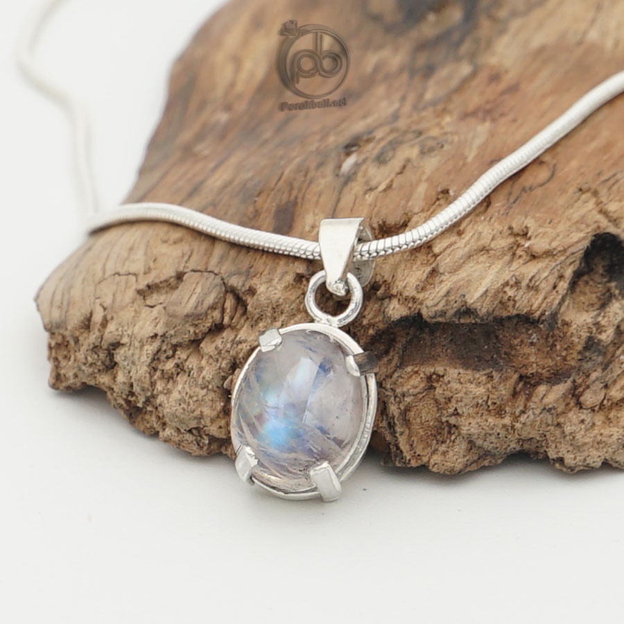 Liontin Wanita Moonstone Biduri Bulan Perak Asli 925 | Tanpa Kalung